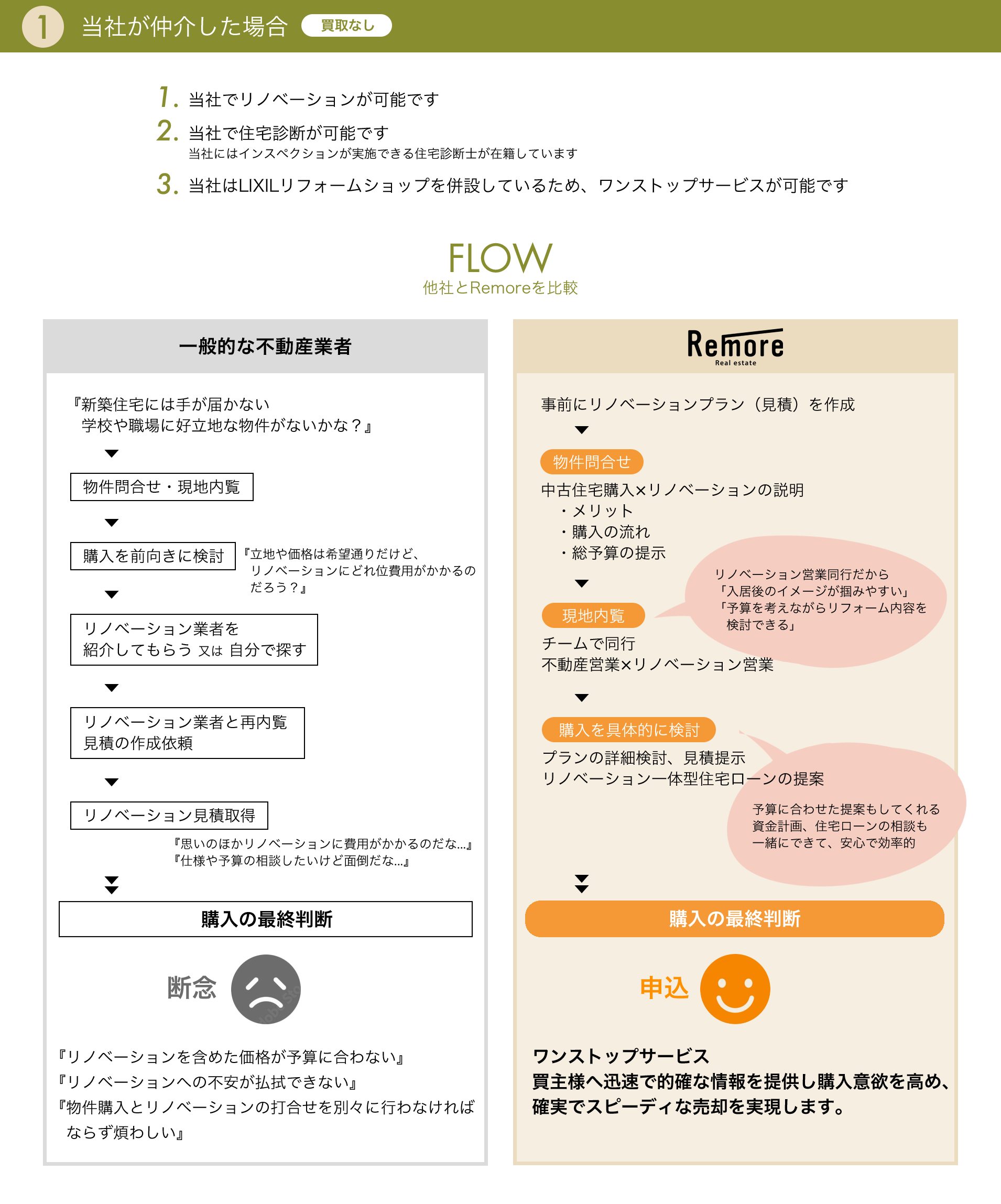早急に売却したい方や周囲の方に知られずに売却したい方には、買取サービスがあります。三立木材(Remore)が買主となるため、素早く売却することが可能です。